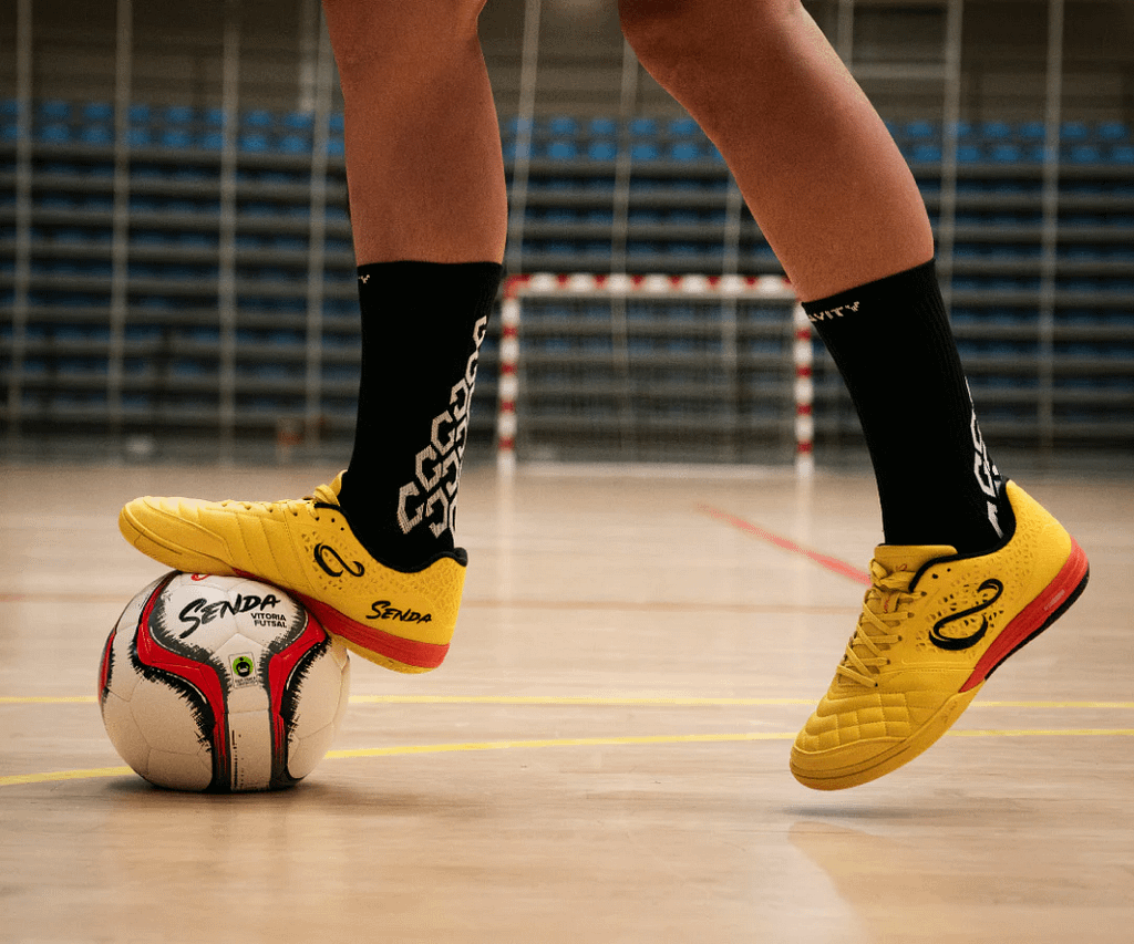 The main difference between the two types of play is that indoor futsal is played on a turf field, where you can wear indoor cleats during practice. Futsal, however, is played on a wooden floor, which requires flat soccer cleats. (see the picture) Usually, it is played in a basketball court gym.